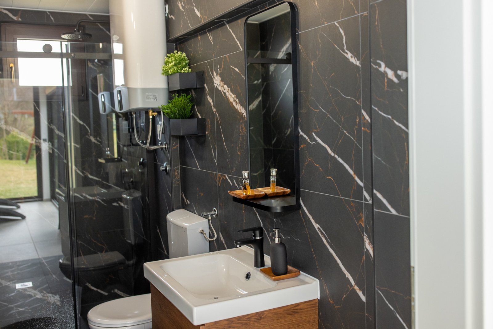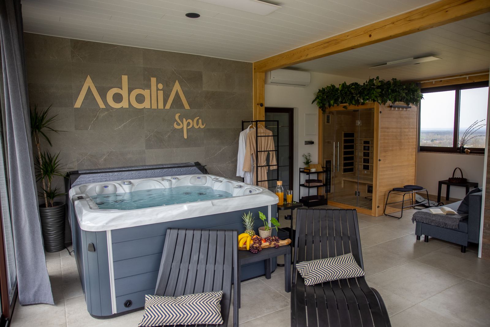 House Adalia is stylishly and modernly furnished for a pleasant vacation for up to 6 guests. It consists of 2 bedrooms, one with a double bed and an extra bed, the other with 2 pull-out beds that can be used as double beds with air conditioning. Guests have at their disposal 2 bathrooms with a shower, one of which is located in the central area with a washing machine, and the other in the Adalia SPA, where there is also a Jacuzzi for 5 people, a sauna, a coffee machine, a sofa, all air-conditioned. The kitchen is fully equipped. There is an LCD TV in the living room and the space is air-conditioned. The house is covered by WiFi signal.
